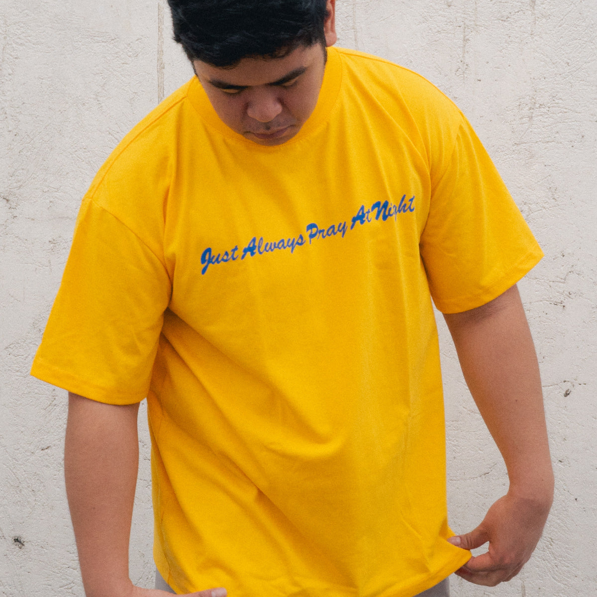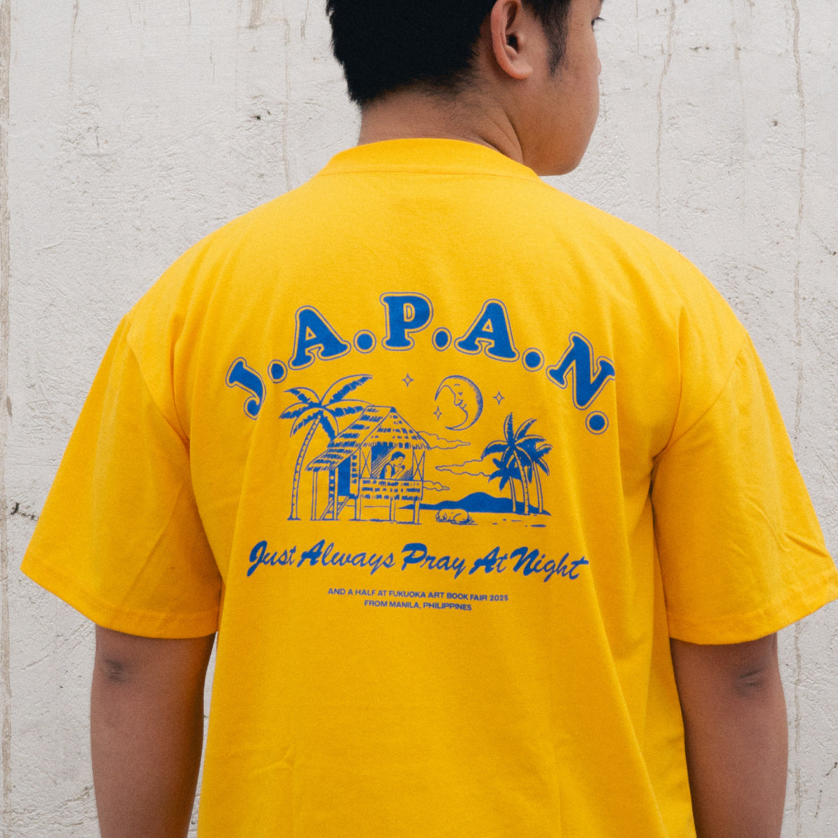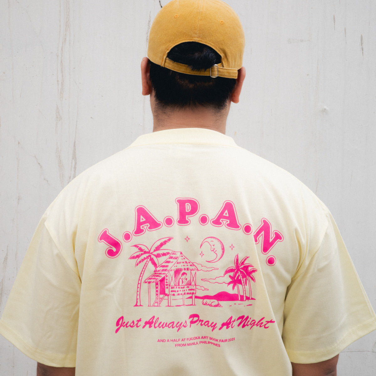 Last April 18–20, we joined the Fukuoka Art Book Fair and made our own version of a commemorative shirt in two colorways featuring one of our favorite acronyms: Just Always Pray At Night 🙏🌙